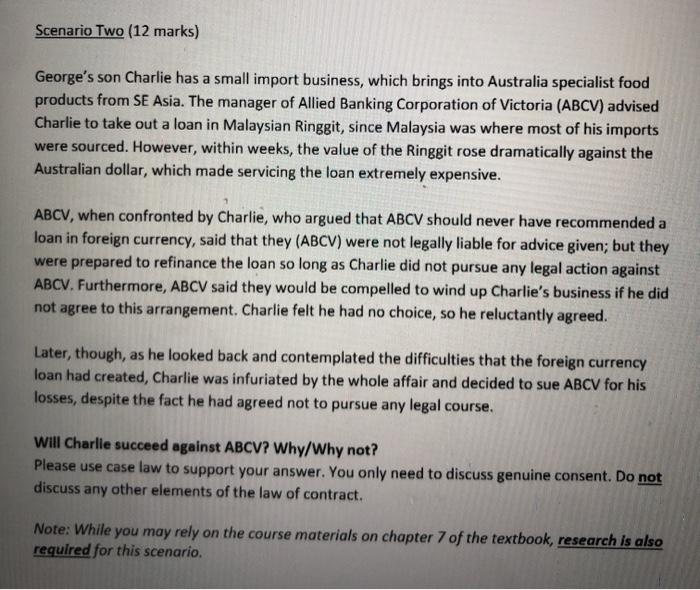 Scenario Two (12 marks) Georgeu0027s son Charlie has a Chegg.com