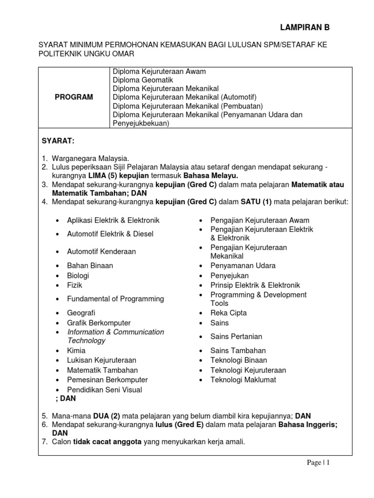 Senarai Syarat Kemasukan PUO 2015 PDF